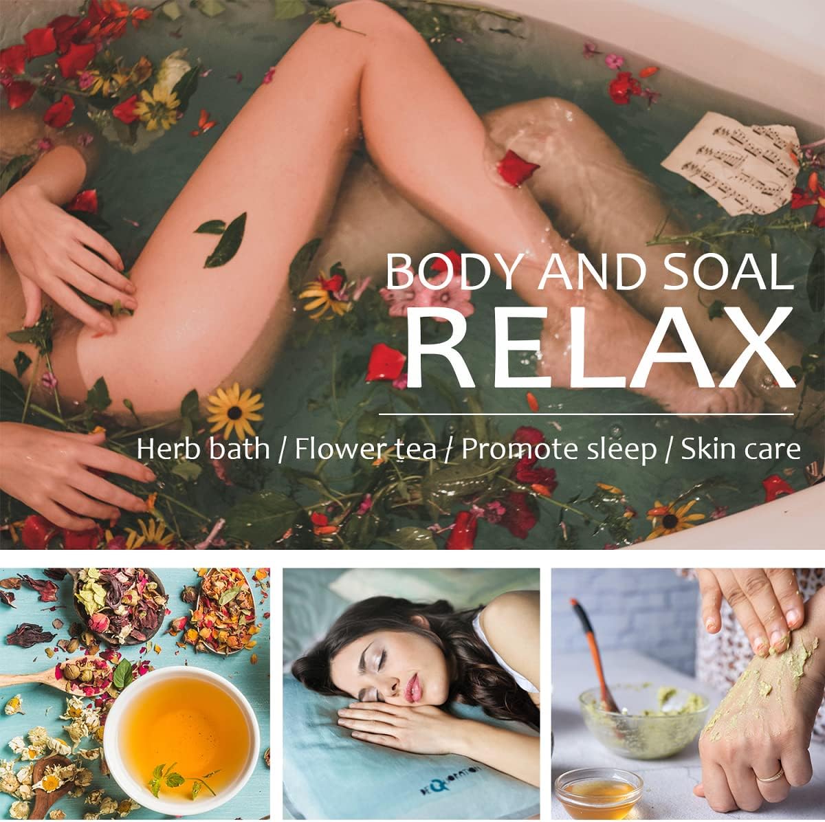 - 【Relax Your Body & Soul】 Rich antioxidants and polyphenols in this flowers and herbs, which could help your skin anti-aging, and relaxes your body and mind well. Whether it's taking a warm flower petal bath, meditating or falling asleep with your favorite flower aromas, or making natural skincare products for yourself, this natural dried flowers kit will always be a great choice.