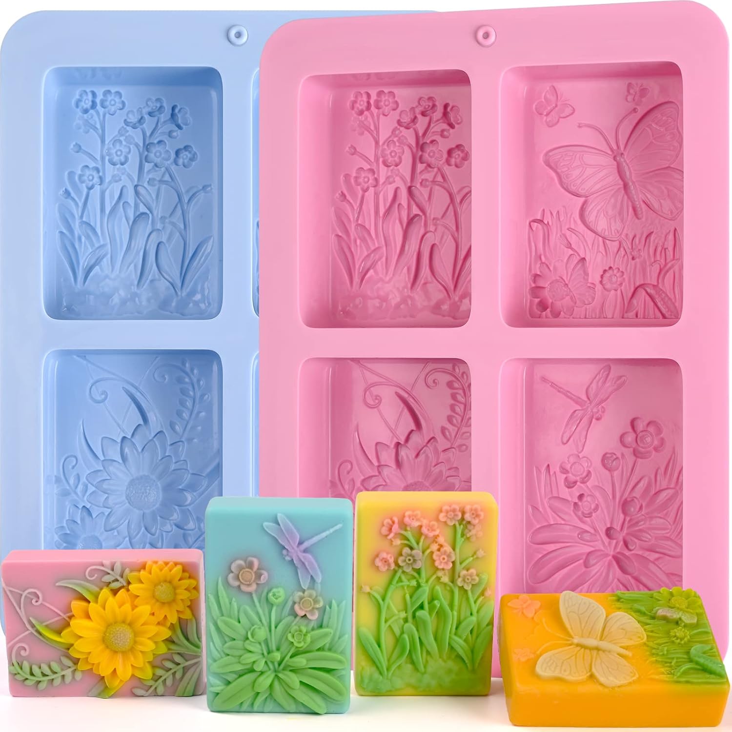 Moukiween Soap Molds Silicone, 3D Rectangular Flower Pattern Silicone Molds for Handmade Craft Soap, Bath Bombs, Chocolate Bars, DIY Candle, Polymer Clay Design