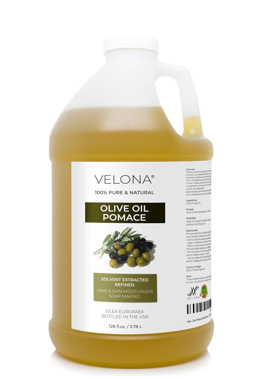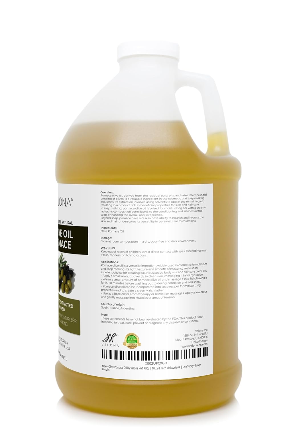 velona Olive Pomace Oil 64 Fl Oz | 100% Pure and Natural Carrier Oil | Refined | Skin, Hair, Body & Face Moisturizing | Use Today – Enjoy Results.